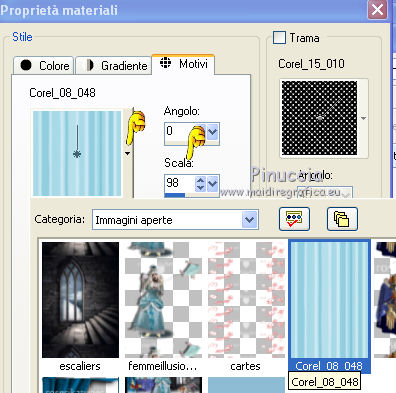 e nel menu "Immagini aperte" seleziona il motivo Corel_08_048 con i seguenti settaggi.