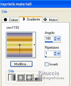 1. Passa il colore di primo piano a Gradiente e seleziona il gradiente cmv1193, con i seguenti settaggi.