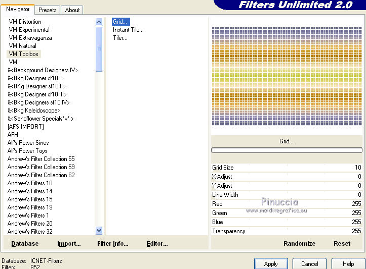 Effetti>Plugins>Filters Unlimited - VM Toolbox - Grid.