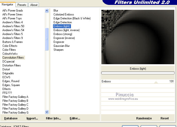 Effetti>Plugins>Filters Unlimited 2.0 - Convolutions Filters - Emboss(Light).