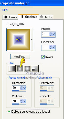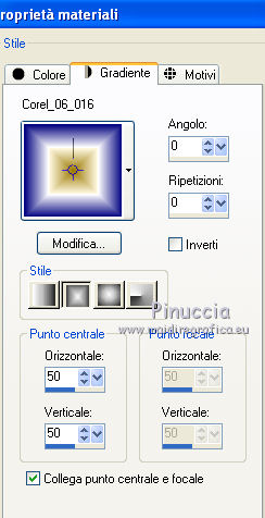 1. Passa il colore di primo piano a Gradiente, e seleziona il gradiente Corel_06_016, con i seguenti settaggi.
