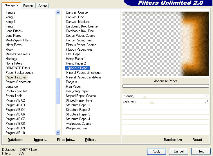 Effetti>Plugins>Filters Unlimited 2.0 - Paper textures - Japanese Paper.