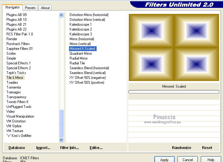 Effetti>Plugins>Filters Unlimited 2.0 - Tile and Mirror - Mirrored and Scaled.