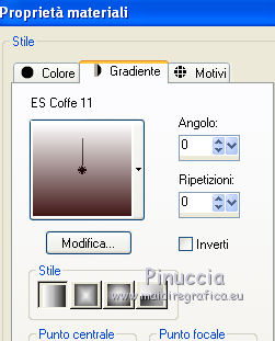 1. Passa il colore di primo piano a Gradiente, e seleziona il gradiente ES Coffee11, con i seguenti settaggi (il colore chiaro deve trovarsi in basso).