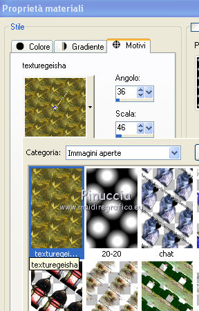 Passa il colore di primo piano a Motivi e cerca la trama nella lista delle Immagini aperte.