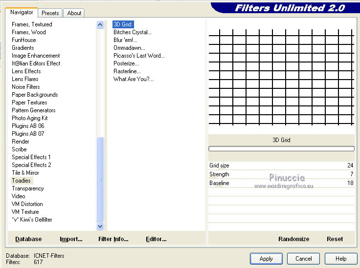 Toadies - 3D Grid (l'effetto è in formato .ffx; per questo funziona soltanto importandolo in Filters Unlimited) qui