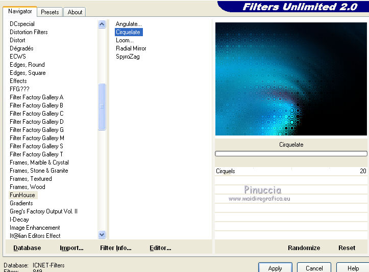 Effetti>Plugins>Filters Unlimited 2.0 - Funhouse - Cirquelate con i settaggi standard.