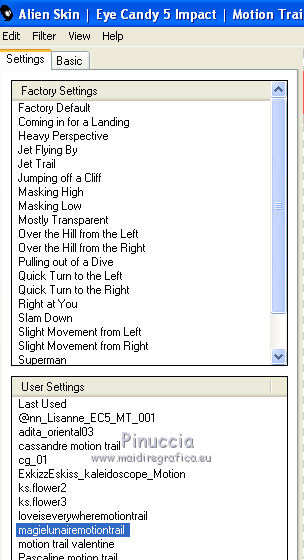 Effetti>Plugins>Alien Skin Eye Candy 5 Impact - Motion Trail.