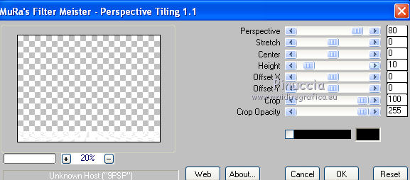 Effetti>Plugins>Mura's Meister - Perspective Tiling, clicca su Reset per impostare i settaggi standard,