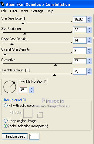 Effetti>Plugins>Alien Skin Xenofex 2.0 - Constellation, con i settaggi precedenti.