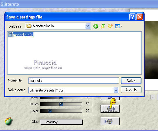 clicca sulla freccia in basso e cerca il preset marinella nella cartella in cui lo hai scompattato.