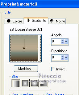 Passa il colore di primo piano a Gradiente, e seleziona il gradiente ES Ocean Breeze 021 con i seguenti settaggi.