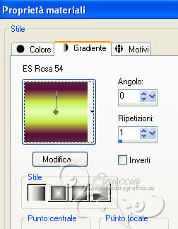Passa il colore di primo piano a Gradiente, e seleziona il gradiente ES Rosa 54, stile Lineare.