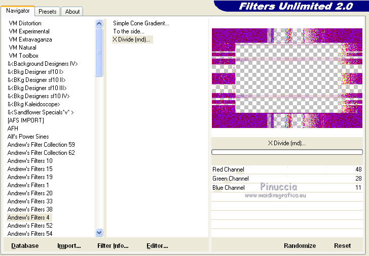 Effetti>Plugins>Filters Unlimited - Andrew's Filter 4 - X Divide(md) con i settaggi standard.