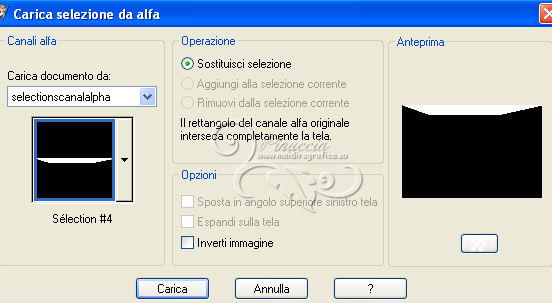 Selezione>Carica/Salva seleizone>Carica selezione da canale alfa.