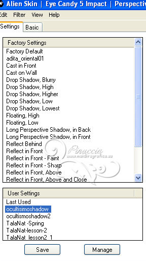 Effetti>Alien Skin Eye Candy 5 Impact - Perspective Shadow.