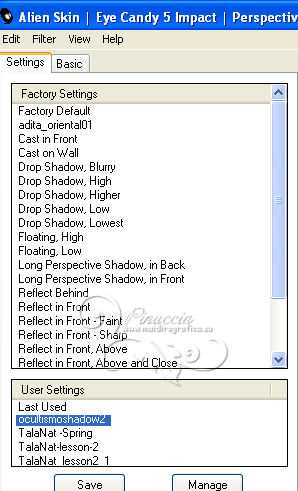 Effetti>Plugins>Alien Skin Eye Candy 5 Impact - Perspective Shadow.