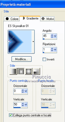 Passa il colore di primo piano a Gradiente, e seleziona il gradiente ES Skywalker 01 con i seguenti settaggi.