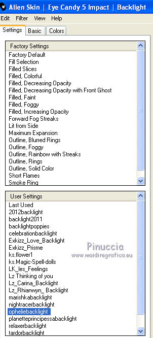 Effetti>Plugins>Alien Skin Eye Candy 5 Impact - Backlight.