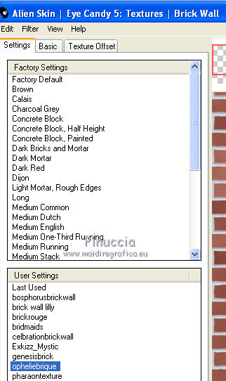 Effetti>Plugins>Alien Skin Eye Candy 5 Textures - Brick Wall.