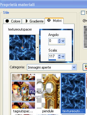 Passa il colore di primo piano a Motivi, e seleziona la trama tra le Immagini aperte con i seguenti settaggi.