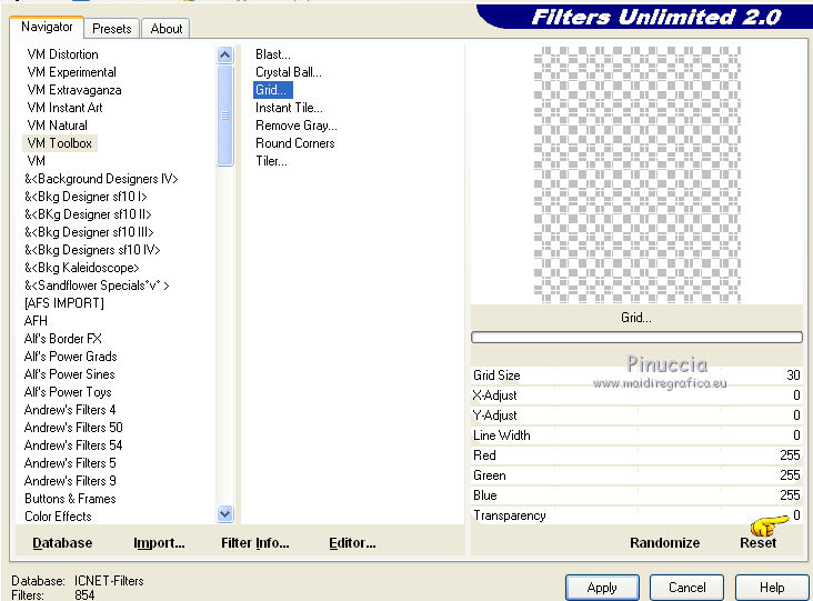 Effetti>Plugins>Filters Unlimited 2.0 - VM Toolbox - Grid: