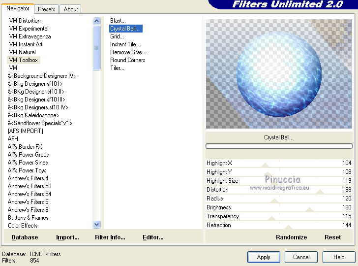 Effetti>Plugins>Filters Unlimited 2.0 - VM Toolbox - Crystal Ball.