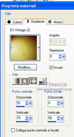 1. Passa il colore di primo piano a Gradiente, e seleziona il gradiente ES Vintage 22, con i seguenti settaggi.