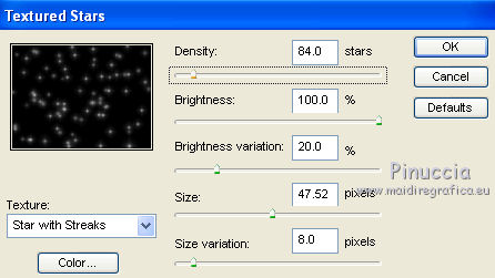 Effetto>Plugins>Universe - Textured Star, con i settaggi precedenti.