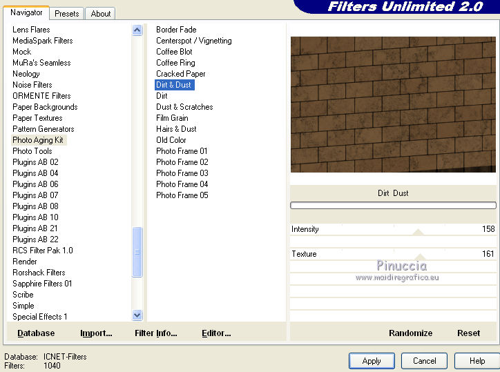 Effetti>Plugins>Filters Unlimited - Photo Aging Kit - Dirt and Dust.