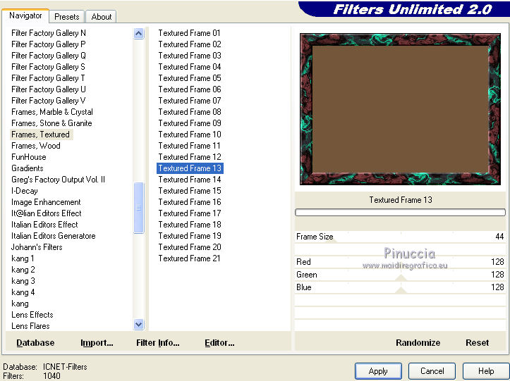 Effetti>Plugins>Filters Unlimited 2.0 Framed Textures - Textured Frame 13.