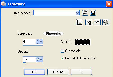 18. Effetti>Effetti di trama>Veneziana, con i settaggi precedenti, ma selezionando anche Orizzontale.