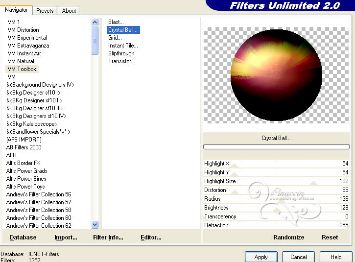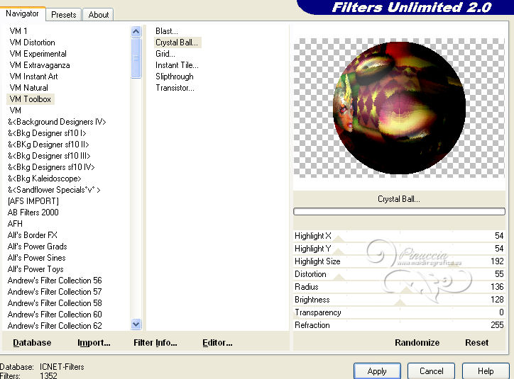 Effetti>Plugins>Filters Unlimited 2.0 - VM Toolbox - Crystal Ball.