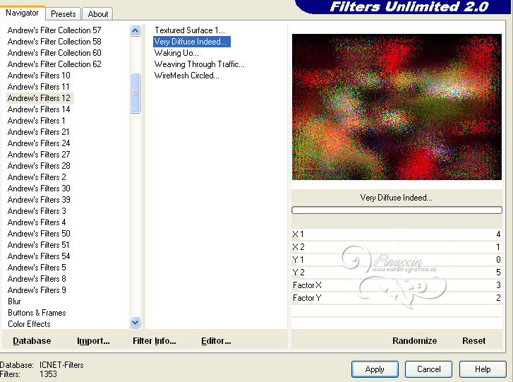 Effetti>Plugins>Filters Unlimited 2.0 - Andrew's Filters 12 - Very Diffuse Indeed, con i settaggi standard.