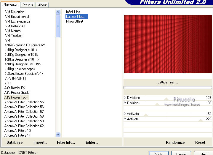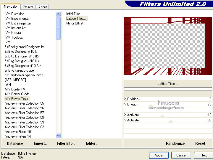 Effetti>Plugins>Filters Unlimited - Alf's Power Toys - Lattice Tiles.