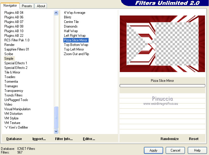 2. Effetti>Plugins>Filters Unlimited - Simple - Pizza Slice Mirror.