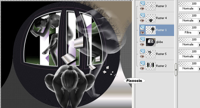 Attiva il livello superiore (Raster 3) e sposta i "riccioli" a destra: