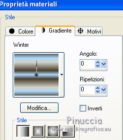 1. Passa il colore di primo piano a Gradiente, e seleziona il gradiente "winter" con i seguenti settaggi.