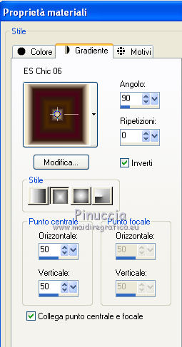 Passa il colore di primo piano a Gradiente e seleziona il gradiente ES Chic 06, stile Rettangolare, con i seguenti settaggi.