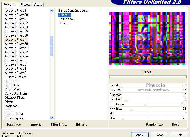 Effetti>Plugins>Filters Unlimited - Andrew's Filters 4 - Stripes, con i settaggi standard.