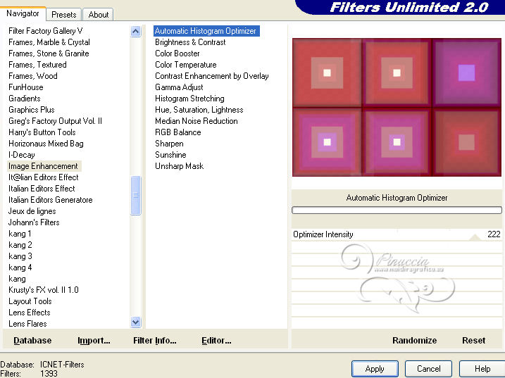 Effetti>Plugins>Filters Unlimited 2.0 - Image Enhancement - Automatic Histogramme Optimizer.
