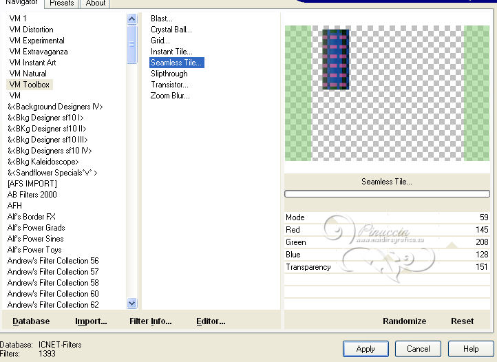 Effetti>Plugins>Filters Unlimited 2.0 - VM Toolbox - Seamless Tile.