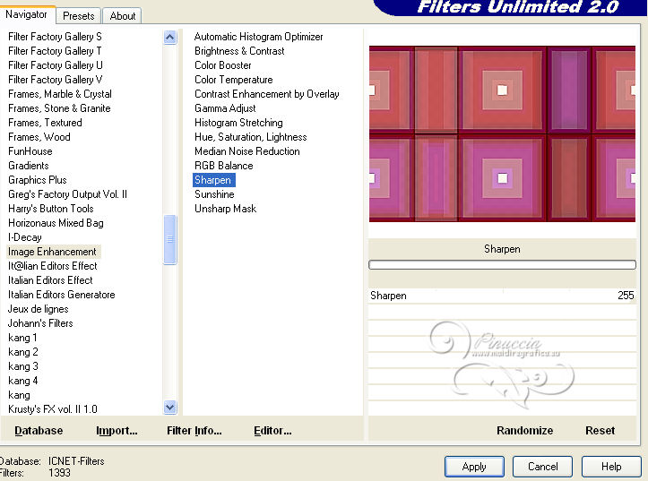 Effetti>Plugins>Filters Unlimited 2.0 - Image Enhancement - Sharpen.