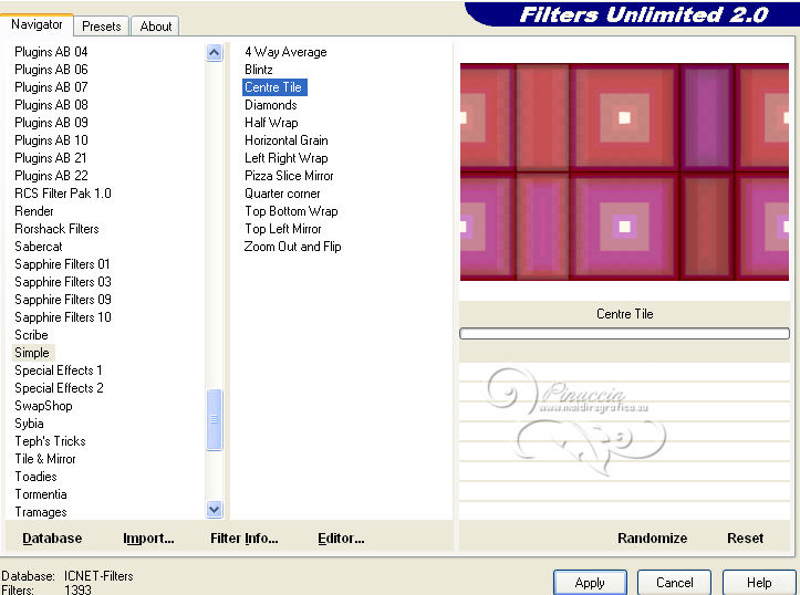 Effetti>Plugins>Filters Unlimited 2.0 - Simple - Centre Tile.