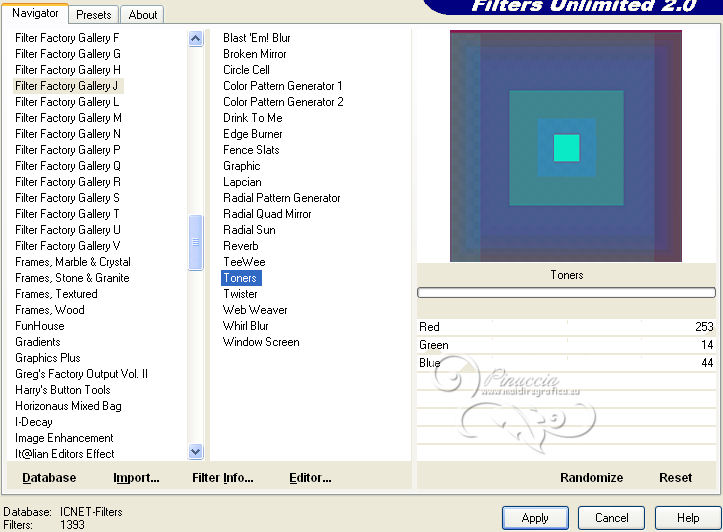 Effetti>Plugins>Filters Unlimited 2.0 - Filter Factory Gallery J - Toners, con i settaggi standard.