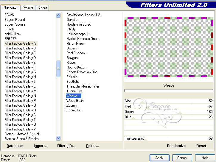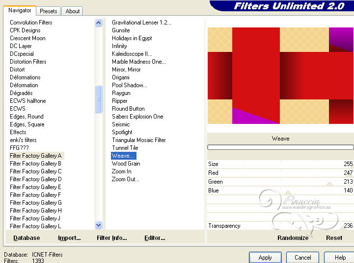 Effetti>Plugins>Filters Unlimited 2.0 - Filter Factory Gallery A - Weave.
