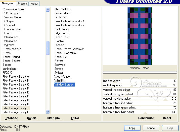 Effetti>Plugins>Filters Unlimited 2.0 - Filter Factory Gallery J - Window Screen.