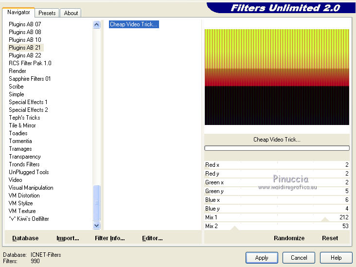 Effetti>Plugins>Filters Unlimited 2.0 - Plugins AB21 - Cheap Video Trick con i settaggi standard.