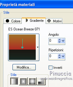 Passa il colore di primo piano a Gradiente e seleziona il gradiente ES Ocean Breeze071, stile Lineare, con i seguenti settaggi.