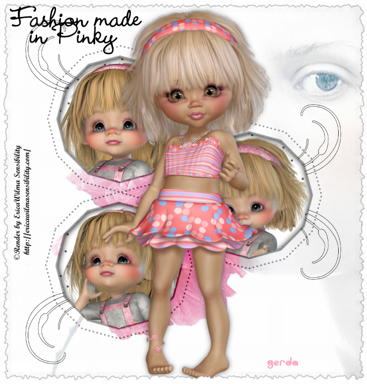qui puoi trovare qualche risposta ai tuoi dubbi. Se l'argomento che ti interessa non è presente, ti prego di segnalarmelo. Occorrente: Materiale qui Filtri: Filters Unlimited qui 1. Apri il tube cercles. Questo sarà lo sfondo del tuo lavoro. 2. Apri il tube pink3 e vai a Modifica>Copia. Torna al tuo lavoro. Attiva lo strumento Bacchetta magica ![]() ![]() seleziona l'interno del cerchio in alto a sinistra. Livelli>Nuovo livello raster. Modifica>Incolla nella selezione. Selezione>Deseleziona. Effetti>Effetti 3D>Sfalsa ombra, con i seguenti settaggi, colore nero: ![]() 3. Apri il tube pink5 e vai a Modifica>Copia. Torna al tuo lavoro. Seleziona con la bacchetta magica l'interno del cerchio a destra.Livelli>Nuovo livello raster. Modifica>Incolla nella selezione. Selezione>Deseleziona. Effetti>Effetti 3D>Sfalsa ombra, con i settaggi precedenti. 4. Apri il tube pink6 e vai a Modifica>Copia. Torna al tuo lavoro. Seleziona con la bacchetta magica l'interno del cerchio in basso a sinistra.Livelli>Nuovo livello raster. Modifica>Incolla nella selezione. Selezione>Deseleziona. Effetti>Effetti 3D>Sfalsa ombra, con i settaggi precedenti. 5. Chiudi il livello di sfondo. Attiva il livello del tube pink 3 e vai a Livelli>Unisci>Unisci visibile. Rinomina questo livello "tre tubes". Riapri il livello di sfondo. Effetti>Effetti 3D>Sfalsa ombra, con i settaggi precedenti. 6. Apri l'immagine "Portrait fleur" e vai a Modifica>Copia. Chiudi il livello "tre tubes". Posizionati sul livello di sfondo. Seleziona con la bacchetta magica l'esterno dei cerchi.Livelli>Nuovo livello raster. Modifica>Incolla nella selezione. Selezione>Deseleziona. Puoi riaprire il livello "tre tubes". 7. Apri il tube "decors" e vai a Modifica>copia. Torna al tuo lavoro e vai a Modifica>Incolla come nuovo livello. Lascia il tube come sta, non occorre spostarlo. 8. Apri il tube pink4 e vai a Modifica>Copia. Torna al tuo lavoro. Posizionati sull'ultimo livello della paletta dei livelli e vai a Modifica>Incolla come nuovo livello. Posiziona il tube come nel mio esempio.Effetti>Effetti 3D>Sfalsa ombra, con i settaggi precedenti. 9. Apri la trama "tuilepetitspois" e minimizzala. Passa il colore di primo piano a Motivi e seleziona la trama con i seguenti settaggi: ![]() Attiva il livello di sfondo. Livelli>Nuovo livello raster. Riempi con il motivo di primo piano.Livelli>Unisci>Unisci tutto. 10. Apri il tube di testo "textemodel" e vai a Modifica>Copia. Torna al tuo lavoro e vai a Modifica>incolla come nuovo livello. Spostalo in basso a sinistra, come nel mio esempio.11. Apri il tube di testo "textefashion", e vai a Modifica>Copia. Torna al tuo lavoro e vai a Modifica>Incolla come nuovo livello. Spostalo in alto a sinistra, come nel mio esempio.12. Apri il tube "textesweety", e vai a Modifica>Copia. Torna al tuo lavoro e vai a Modifica>Incolla come nuovo livello. Spostalo in basso a destra, come nel mio esempio.13. Livelli>Unisci>Unisci tutto. Livelli>Innalza livello di sfondo. Effetti>Plugins>Filters Unlimited - Edges Squares - Square Edge 17. 14. Aggiungi il tuo nome e/o il tuo watermark. Livelli>Unisci>Unisci tutto e salva in formato jpg. ![]() Le vostre versioni. Grazie ![]() Gerda ![]() Se hai problemi o dubbi, o trovi un link non funzionante, o anche soltanto per un saluto, scrivimi. 18 Aprile 2008 |